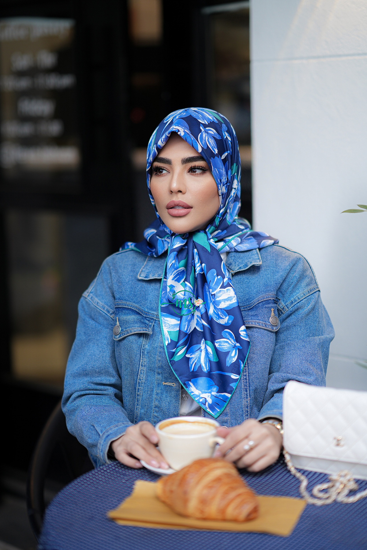 روسری ابریشم ژاکارد طرح چریکی آبی