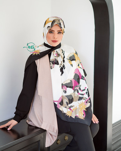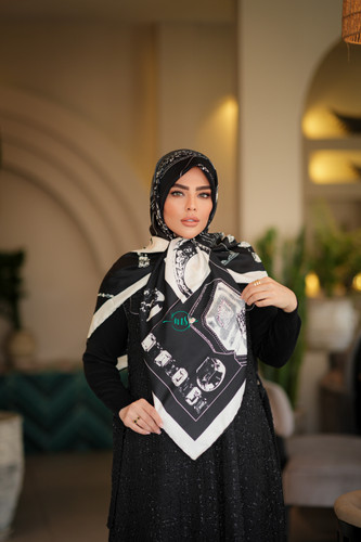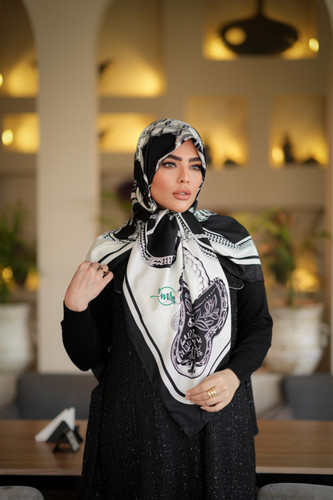 روسری ابریشم ژاکارد طرح لاکچری مشکی سفید