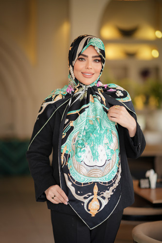 روسری ابریشم ژاکارد طرح لاکچری مشکی سبز