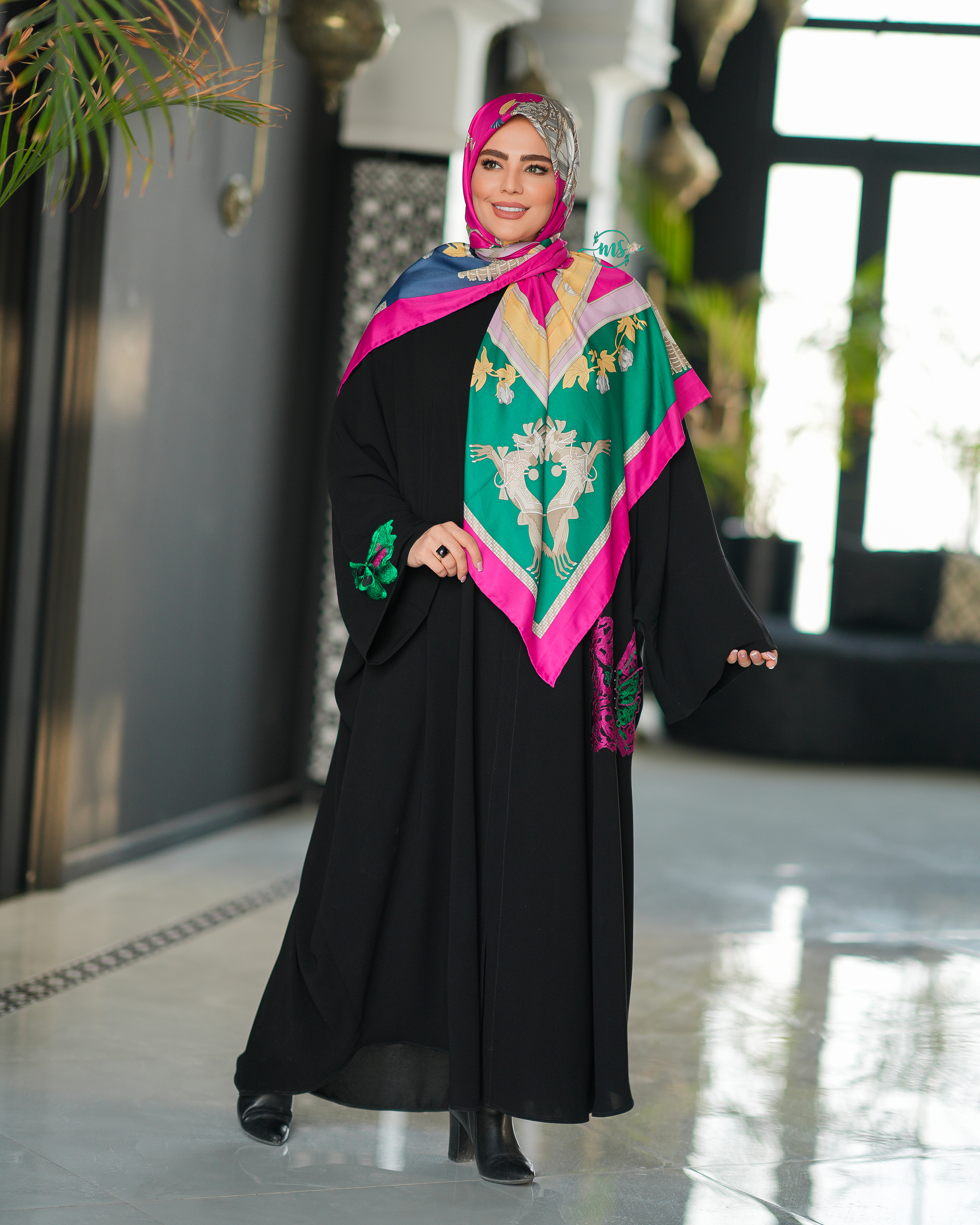روسری ابریشم ژاکارد طرح لاکچری مشکی سبز