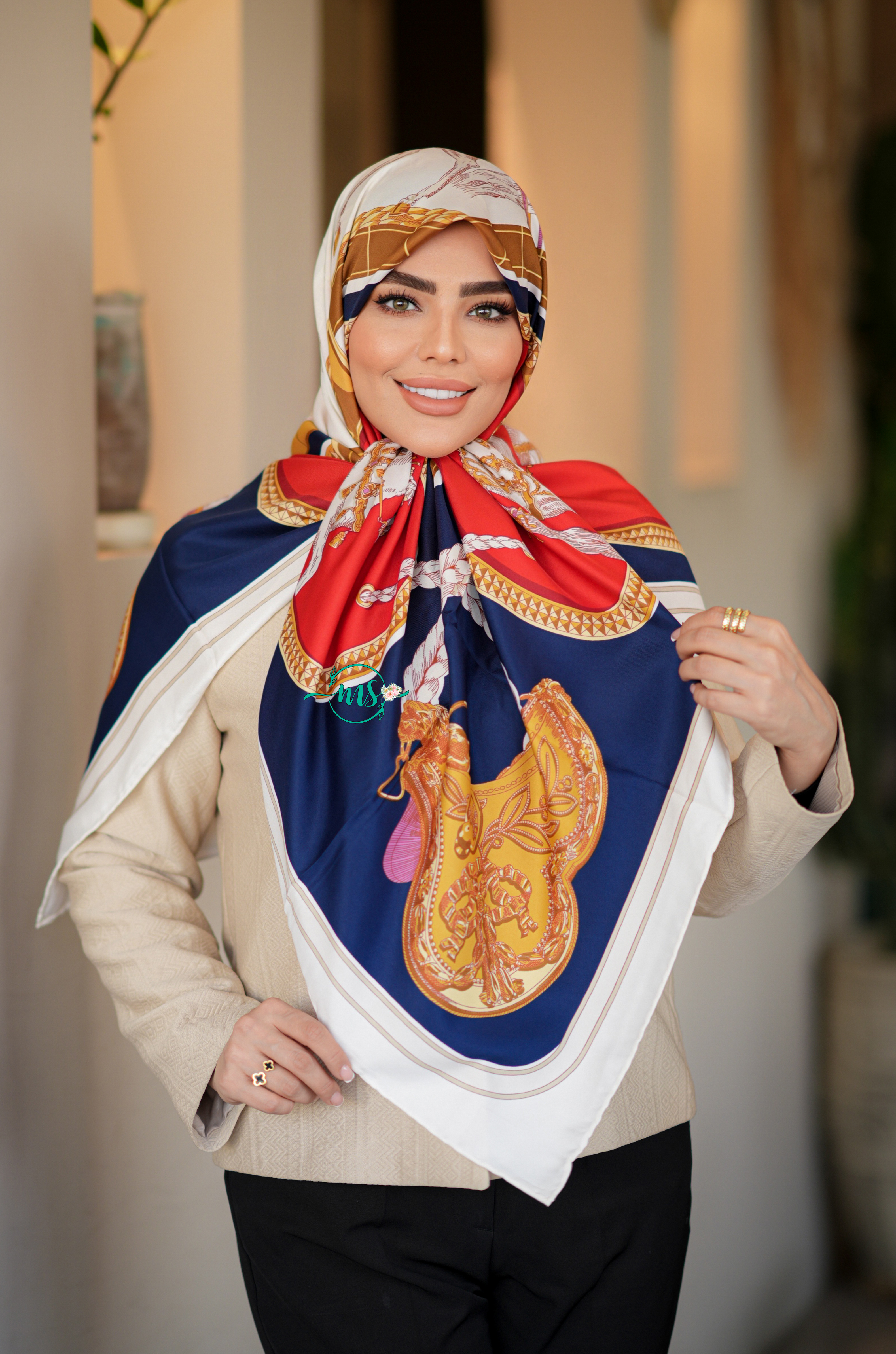 روسری طرح کلاسیک هرمس سرمه ای قرمز