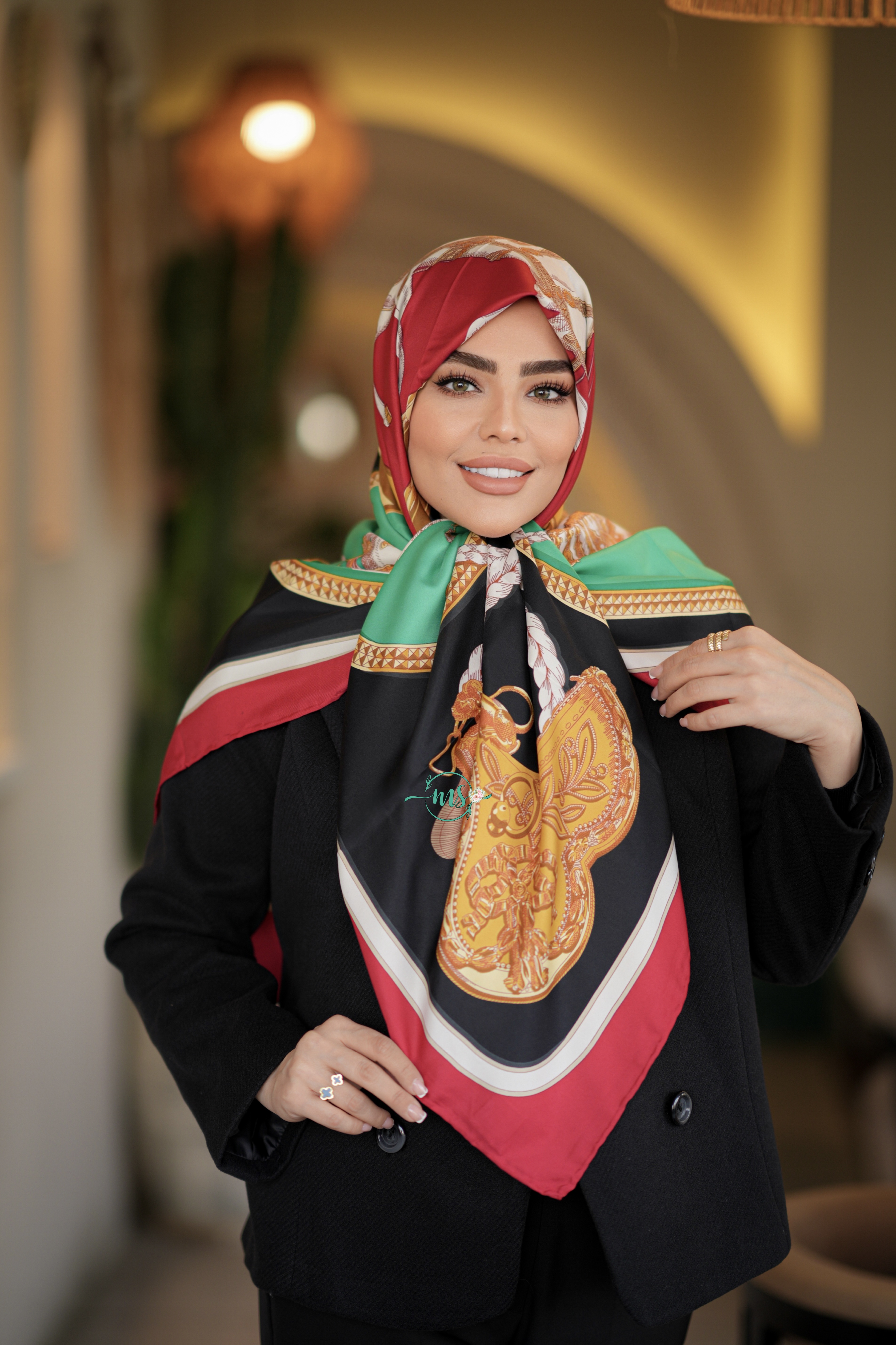 روسری طرح کلاسیک هرمس مشکی قرمز سبز