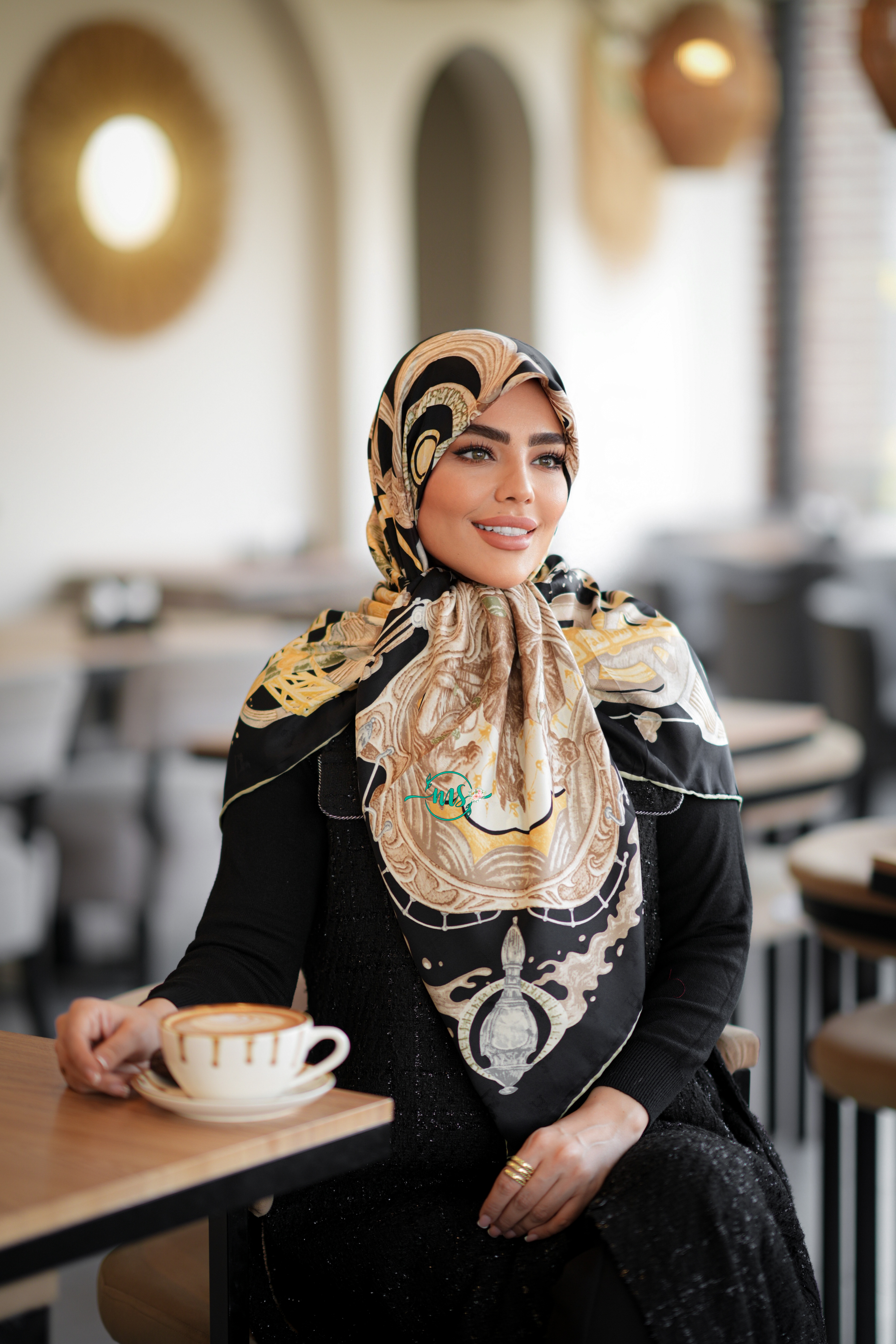 روسری ابریشم ژاکارد طرح لاکچری مشکی شکلاتی