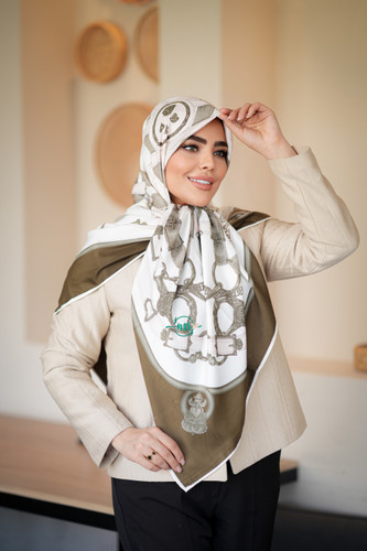روسری ابریشم ژاکارد طرح لاکچری سبز زیتونی روشن