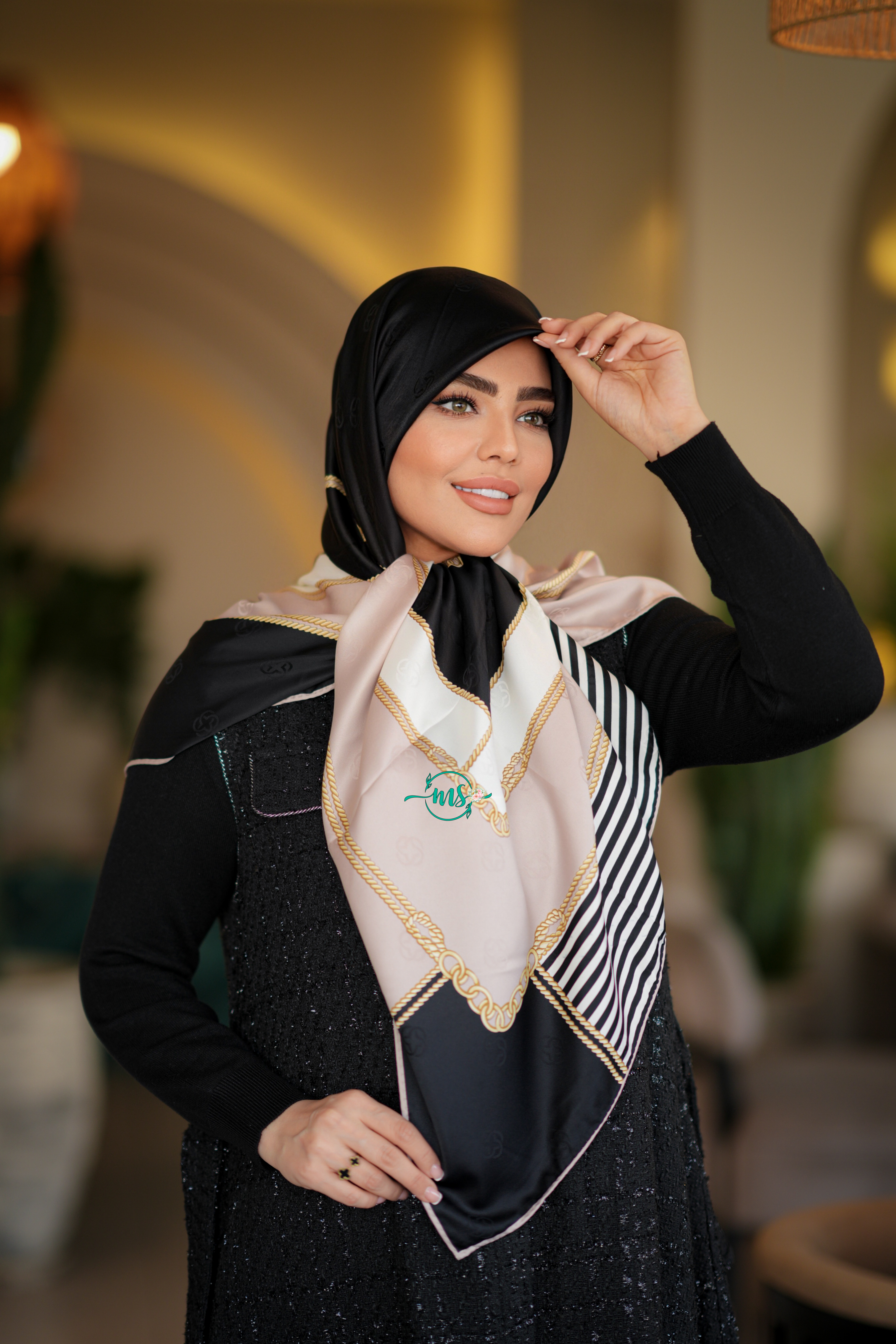 روسری طرح کمربندی هرمس مشکی کرم