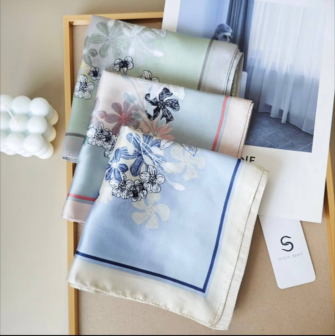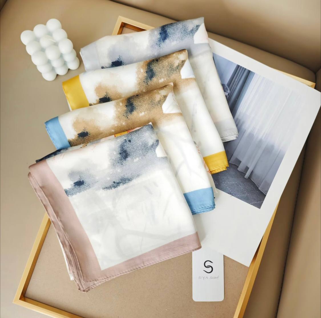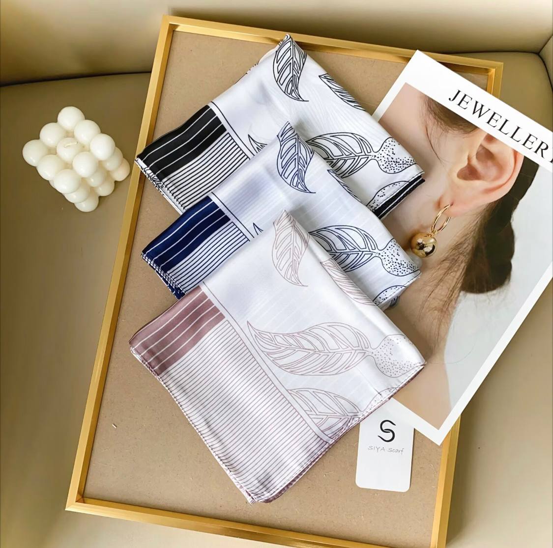 روسری ابریشم نگین دار مربعی