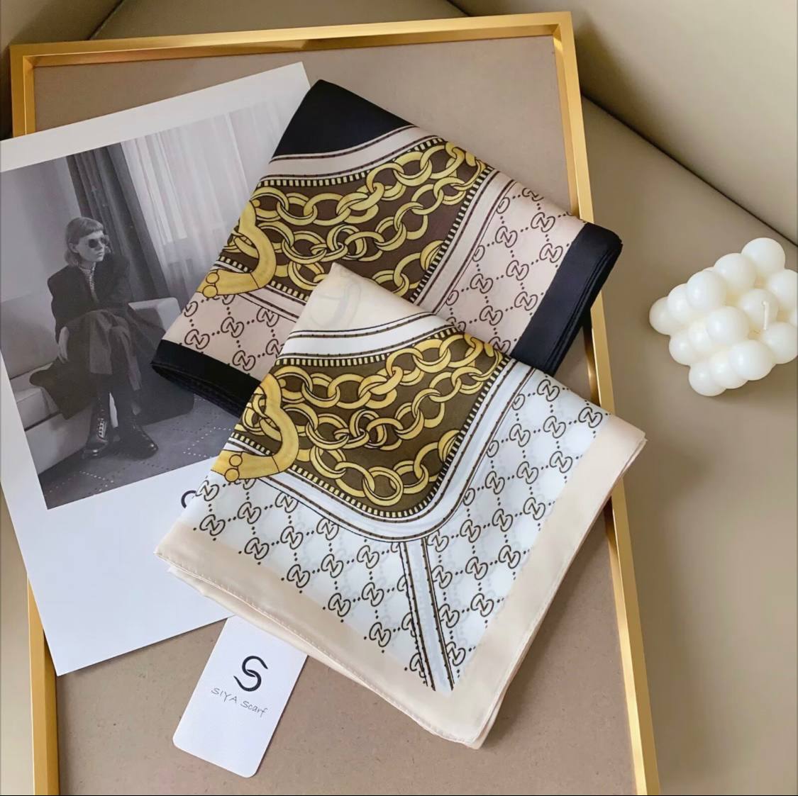 بیبی اسکارف قواره 70 طرح گوچی حاشیه مارک