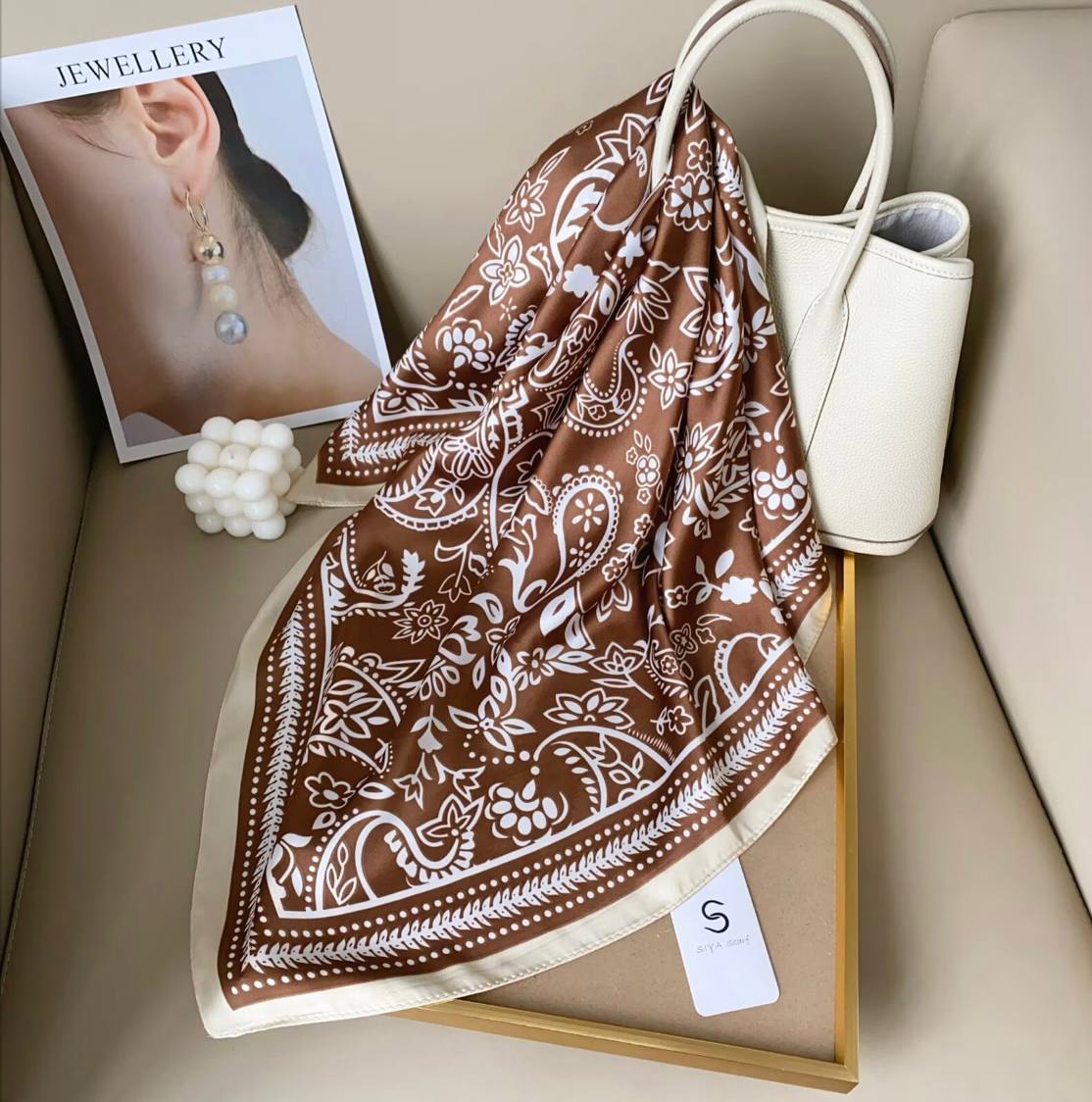 روسری طرح کمربندی هرمس قهوه ای