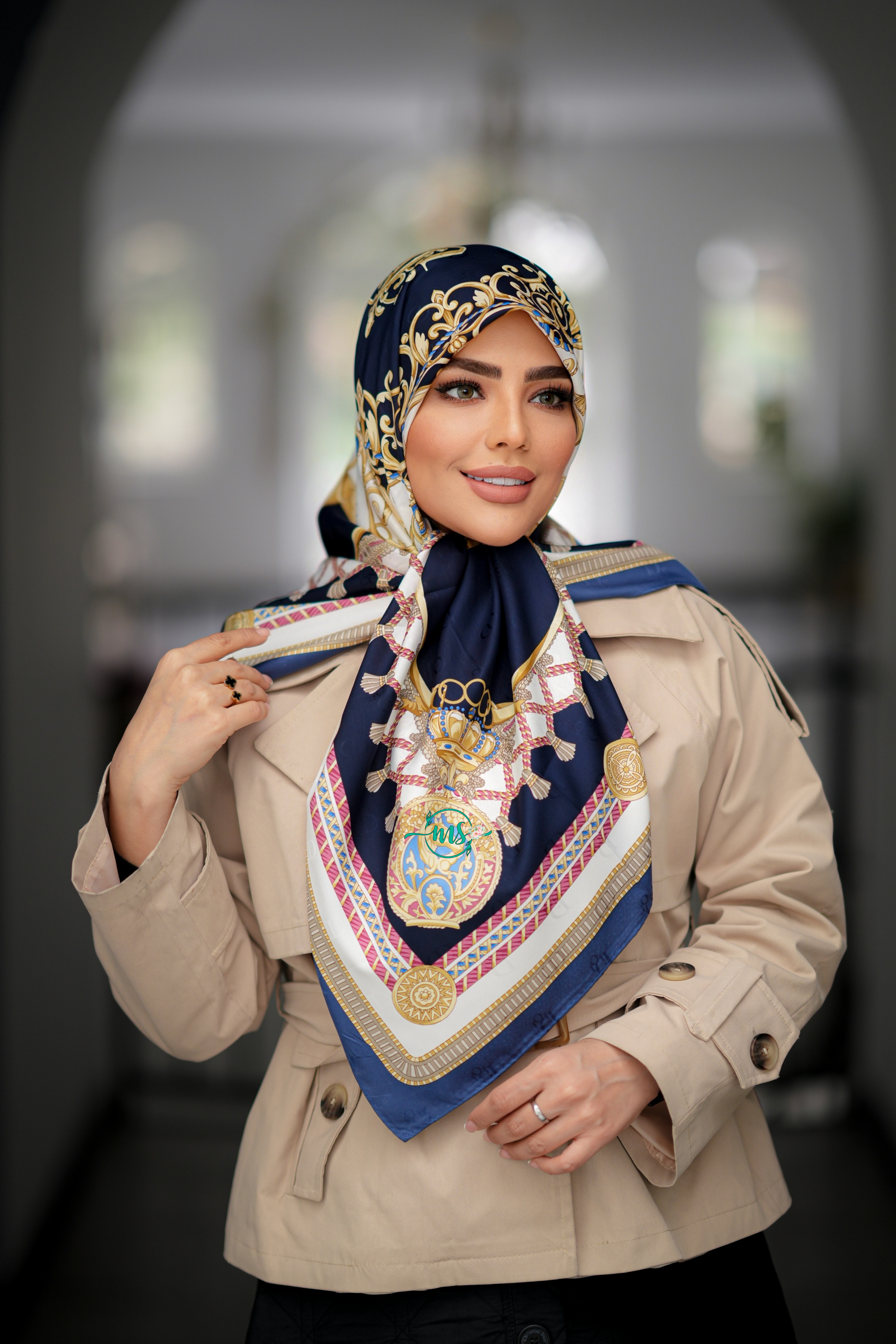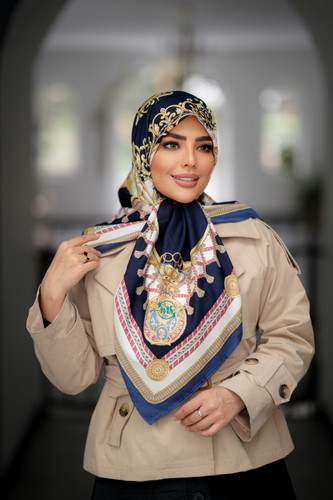 روسری ابریشم طرح شنل رنگ سرمه ای