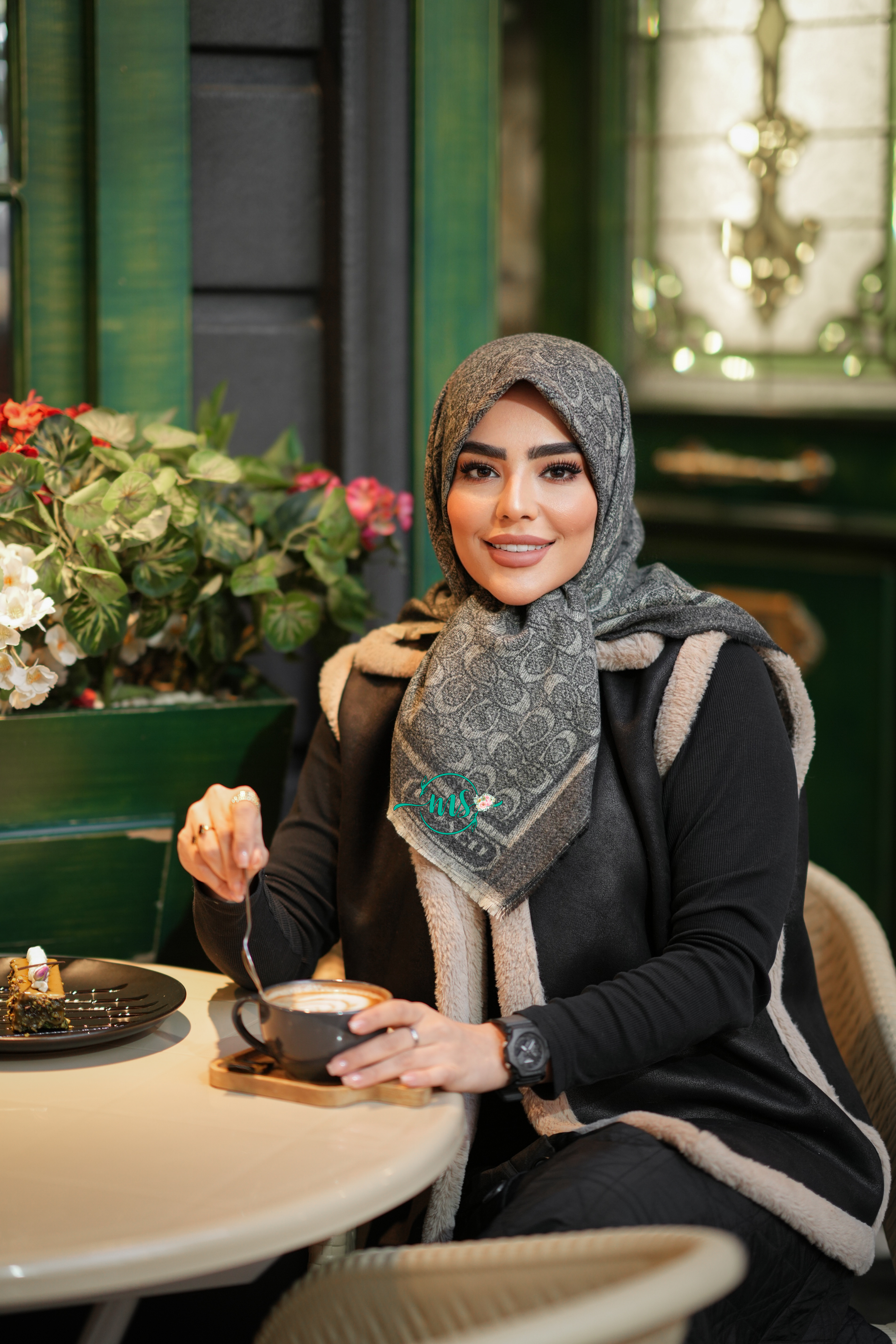 روسری موهر دورو طرح توری برچ رنگ زغالی