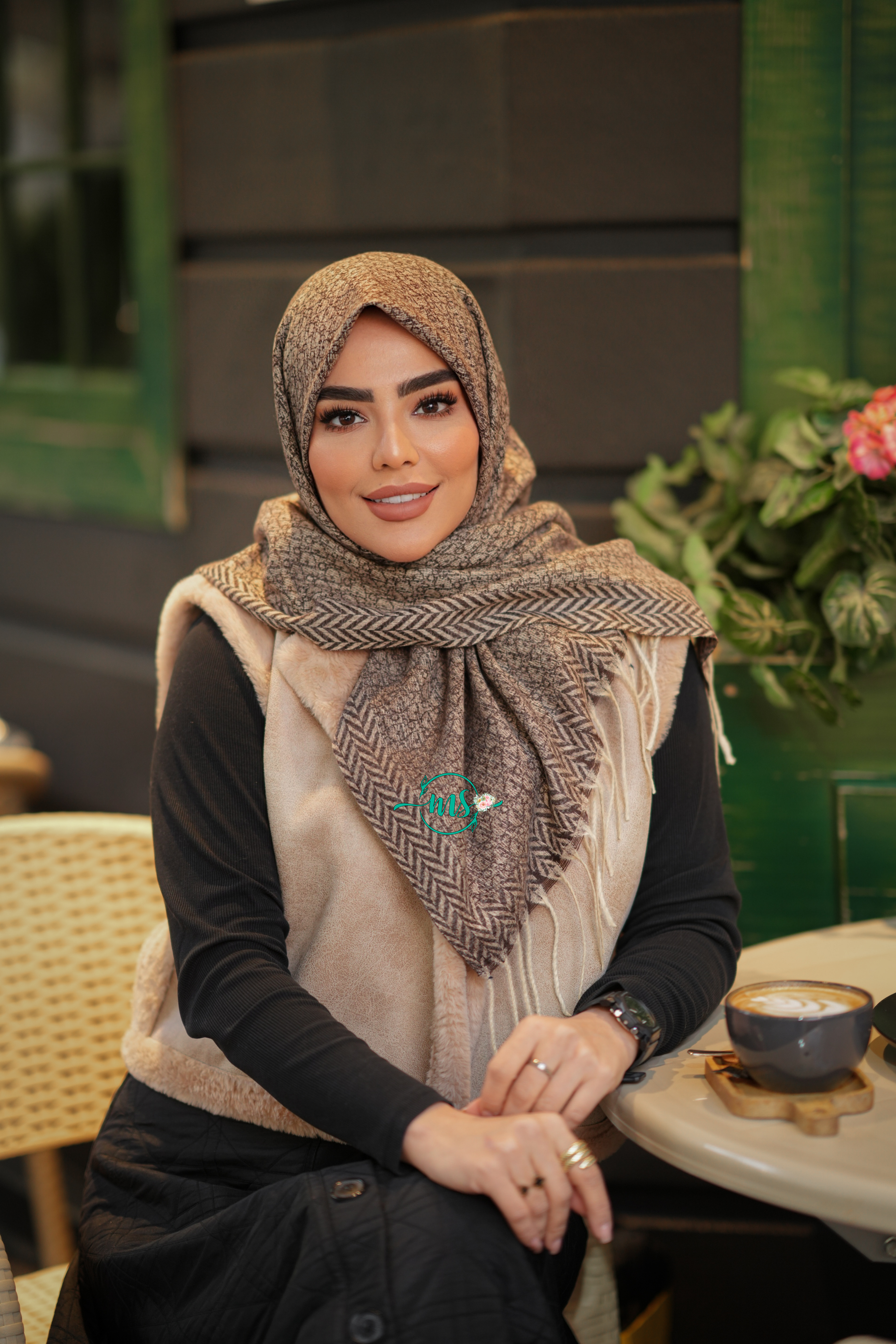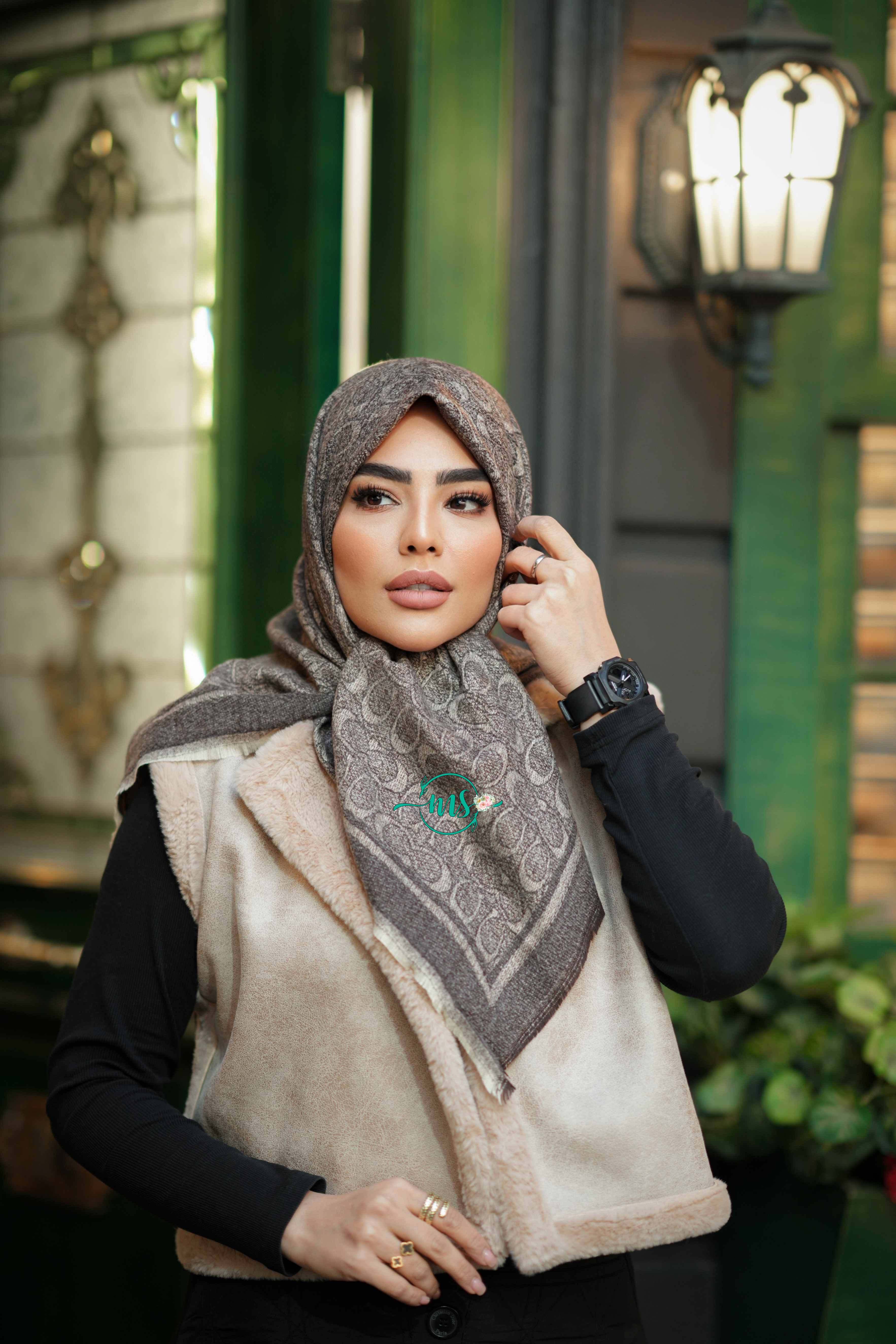 روسری موهر دورو طرح توری برچ رنگ قهوه ای