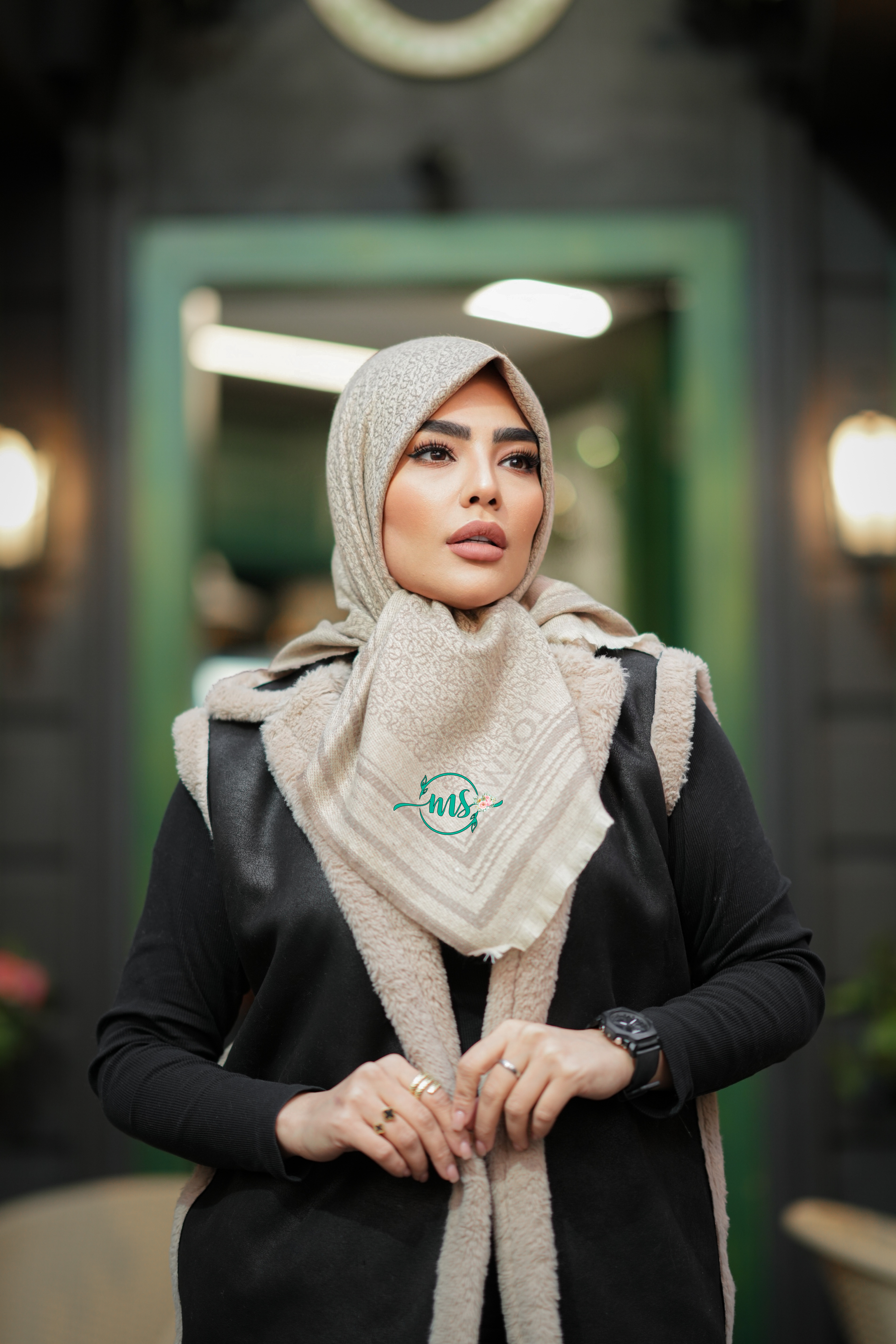 روسری موهر دورو طرح توری برچ رنگ کرم
