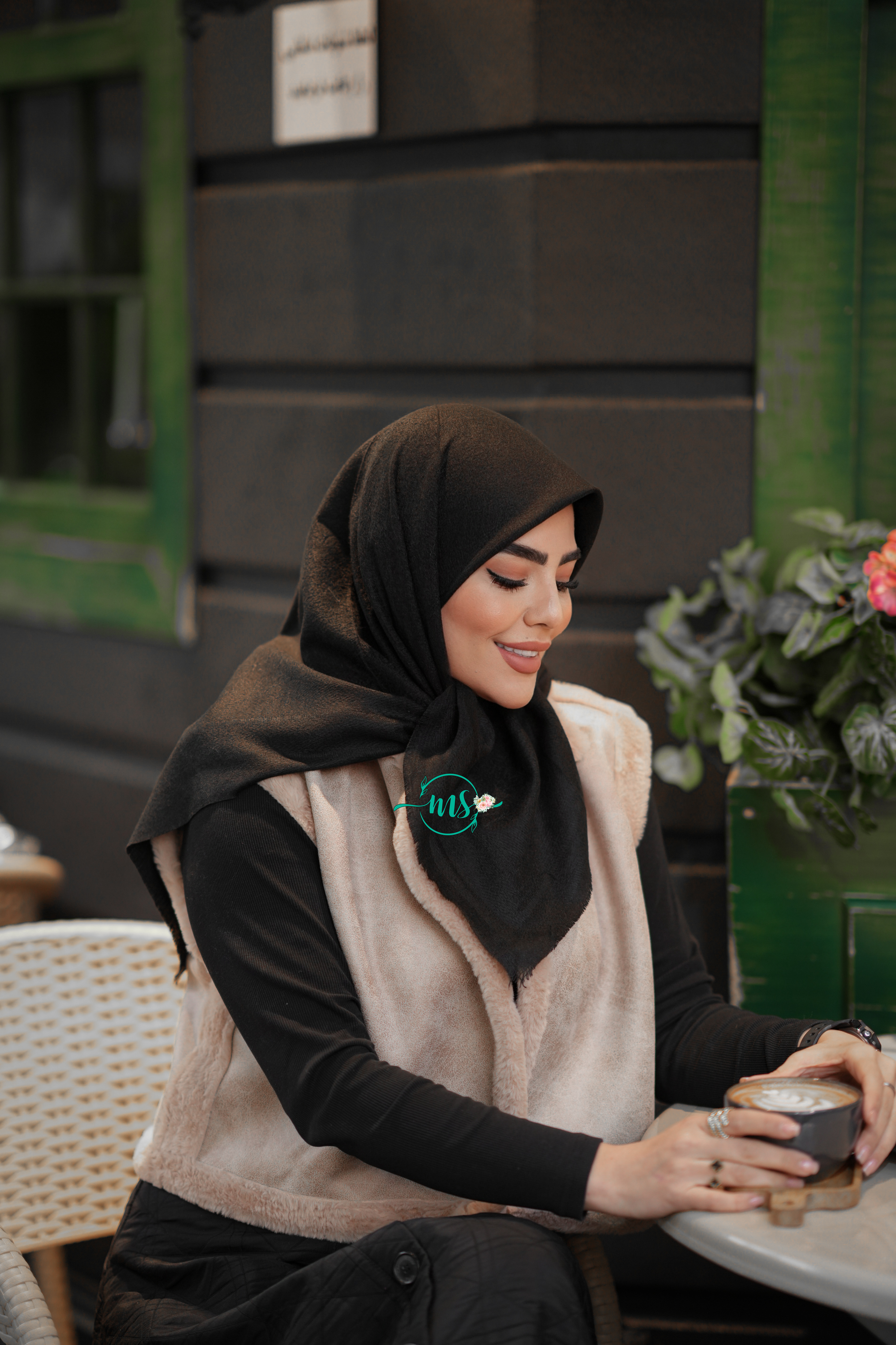 روسری موهر دورو طرح توری برچ رنگ مشکی