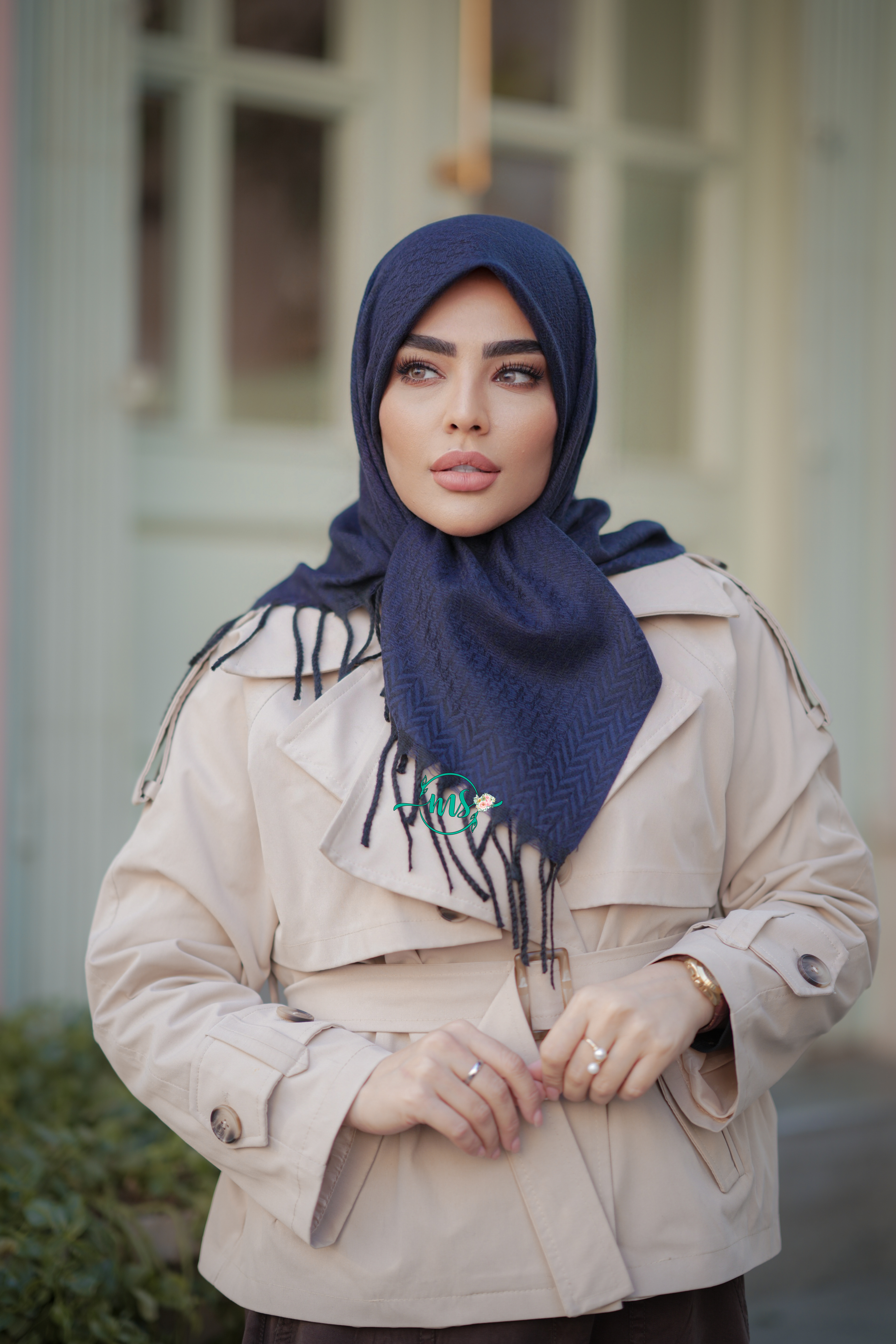 روسری موهر دورو طرح توری برچ رنگ سرمه ای