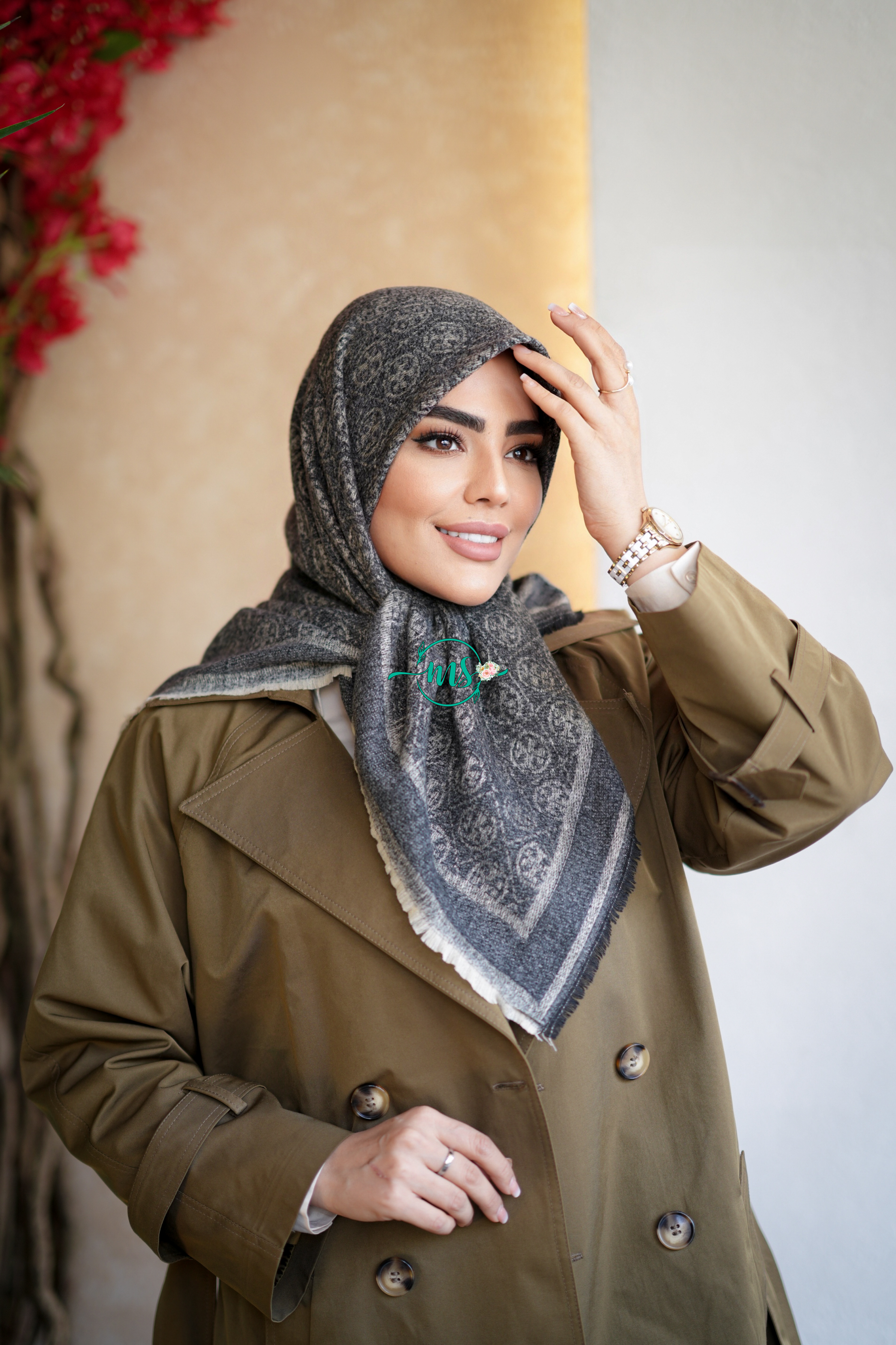 روسری موهر دورو طرح لوویی وی رنگ زغالی