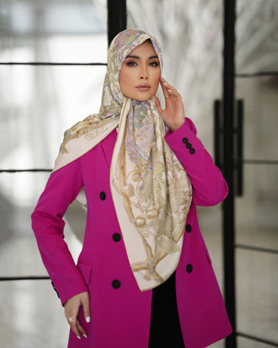 ناموجودروسری ابریشم ژاکارد طرح آتن شیری