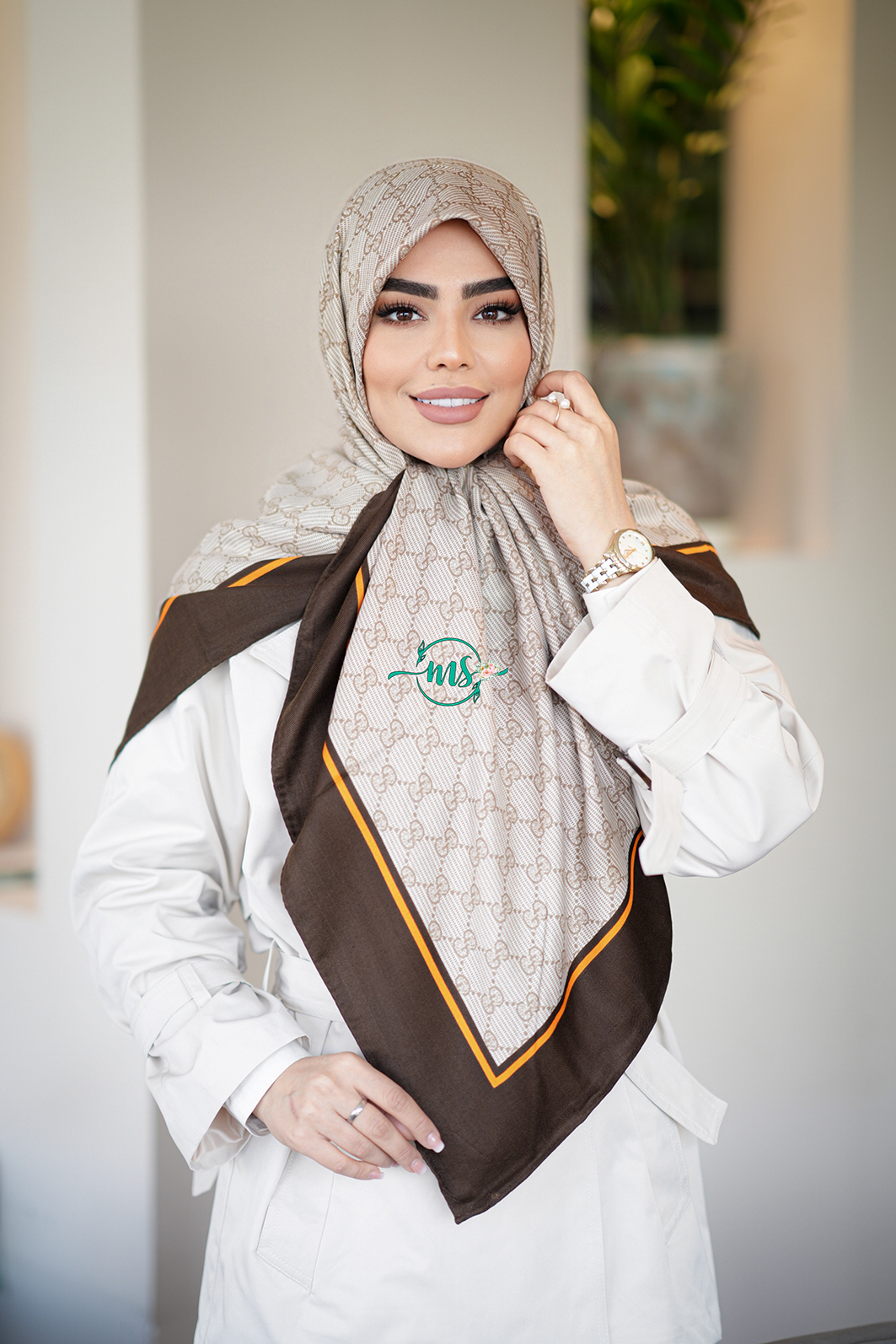 روسری کشمیر طرح گوچی رنگ قهوه ای