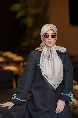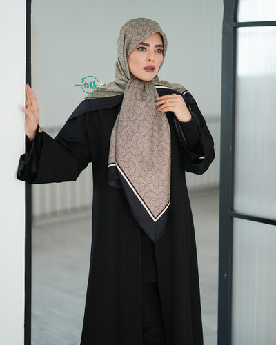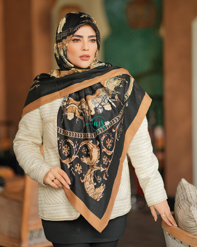 روسری ابریشم ژاکارد طرح شنل مشکی کرم تیره