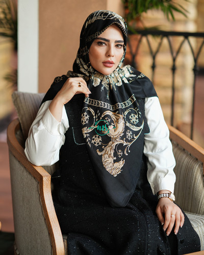 روسری طرح دیور مربعی مشکی حاشیه کرم