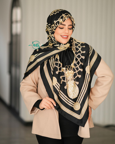 ناموجود روسری ابریشم ژاکارد طرح تروا مشکی طلایی