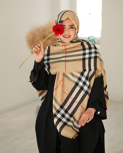 روسری کشمیر طرح سینیوریتا مشکی کرم