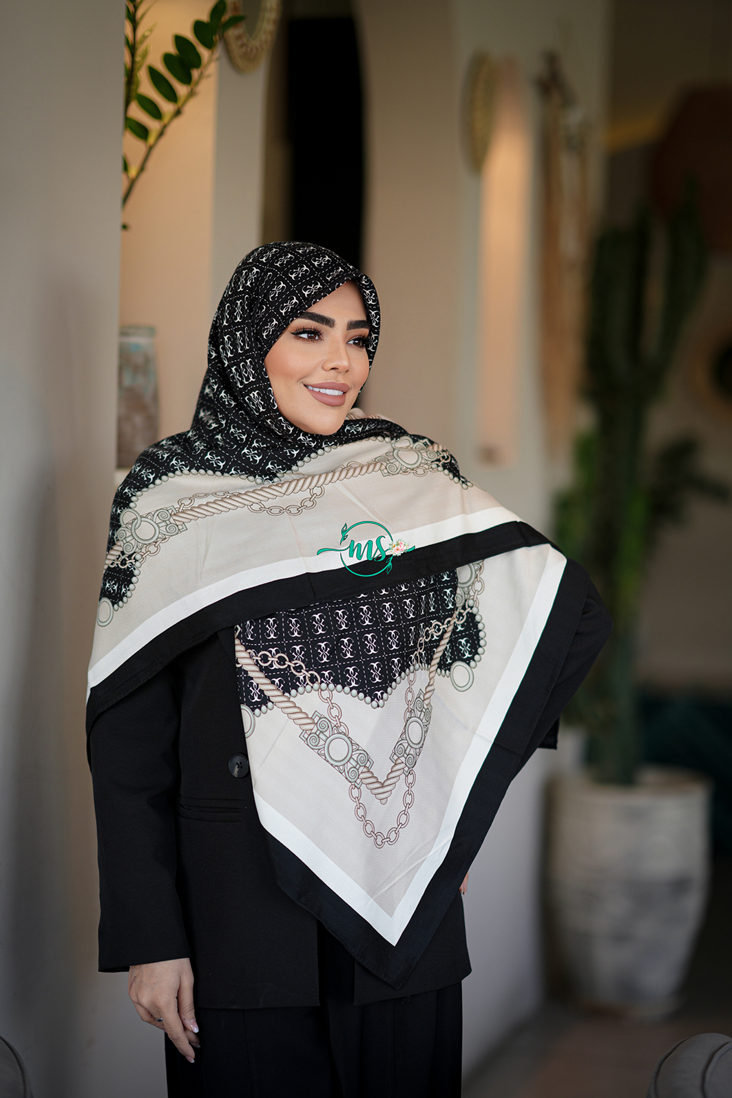 روسری کشمیر مشکی سفید