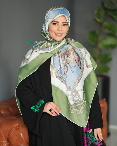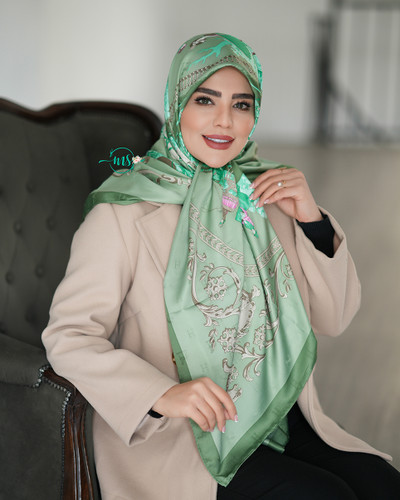 روسری ابریشم ژاکارد طرح سینیوریتا سبز