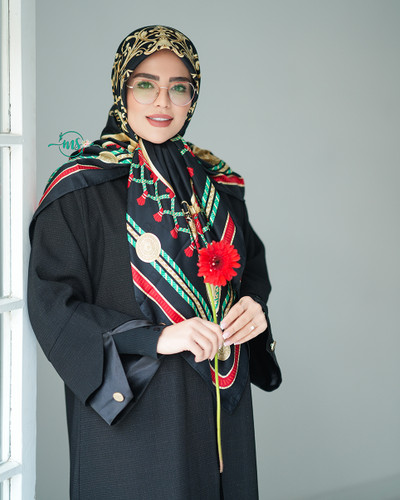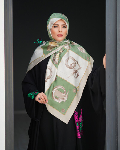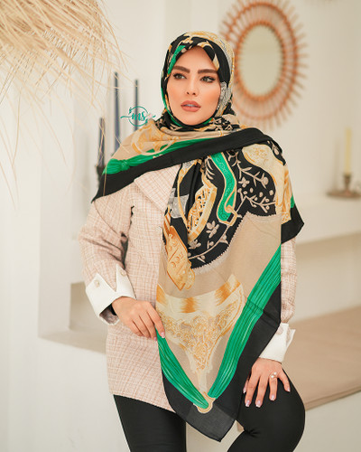 روسری قواره 90 طرح هرمس قاب قابی مشکی سبز