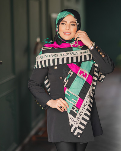 روسری ابریشم کجراه طرح فرگامو سافاری مشکی سبز