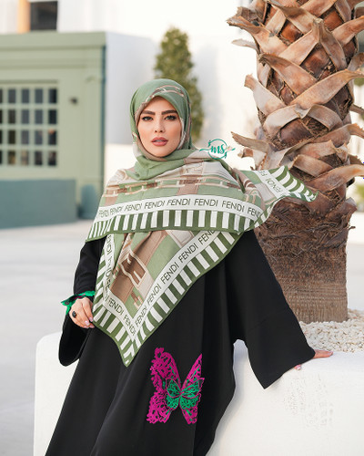 روسری نخ یونیک طرح پروانه رنگ سبز