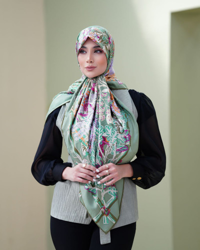 روسری ابریشم ژاکارد طرح جنگل بارانی سبز