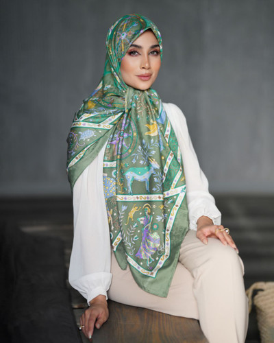 روسری ابریشم کجراه طرح بالماسکه سبز