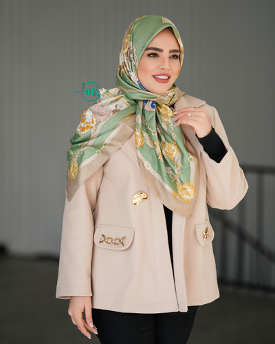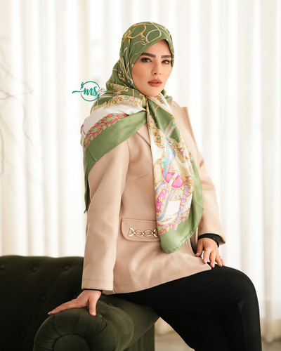 روسری ابریشم ژاکارد طرح شنل کیف سبز
