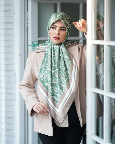 روسری ابریشم ژاکارد طرح هرمس کوبیسم رنگ سبز