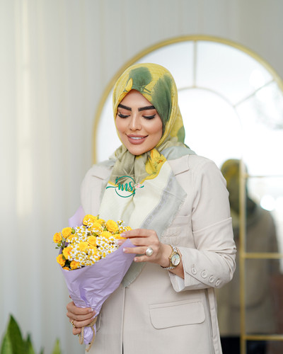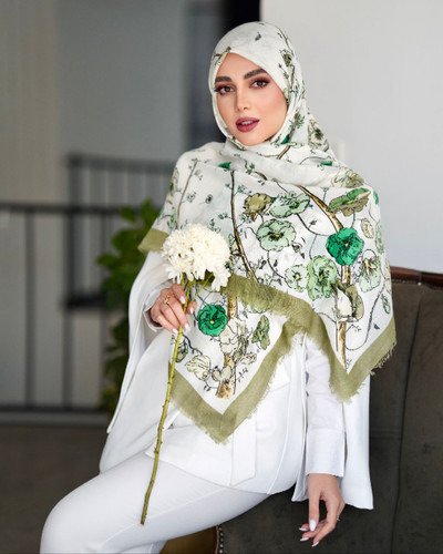 روسری ابریشم ژاکارد طرح گل رنگ سبز