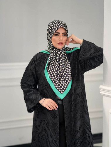 روسری ابریشم ژاکارد طرح باربری مربع مشکی سبز