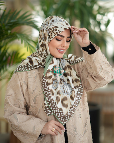 روسری ابریشم کجراه پلنگی حاشیه سبز