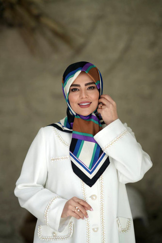 روسری ابریشم ژاکارد طرح کمربندی وسط ساده آبی سبز