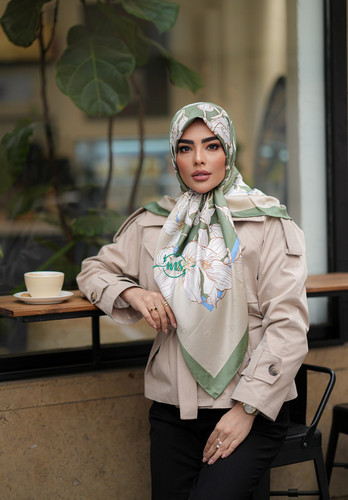 ناموجودروسری ابریشم ژاکارد طرح قاب سبز موکا