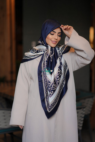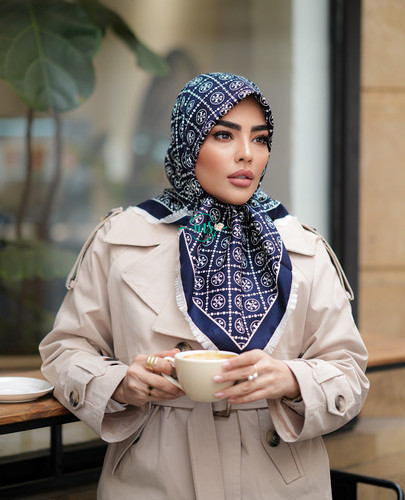 روسری ابریشم ژاکارد طرح شنل سرمه ای