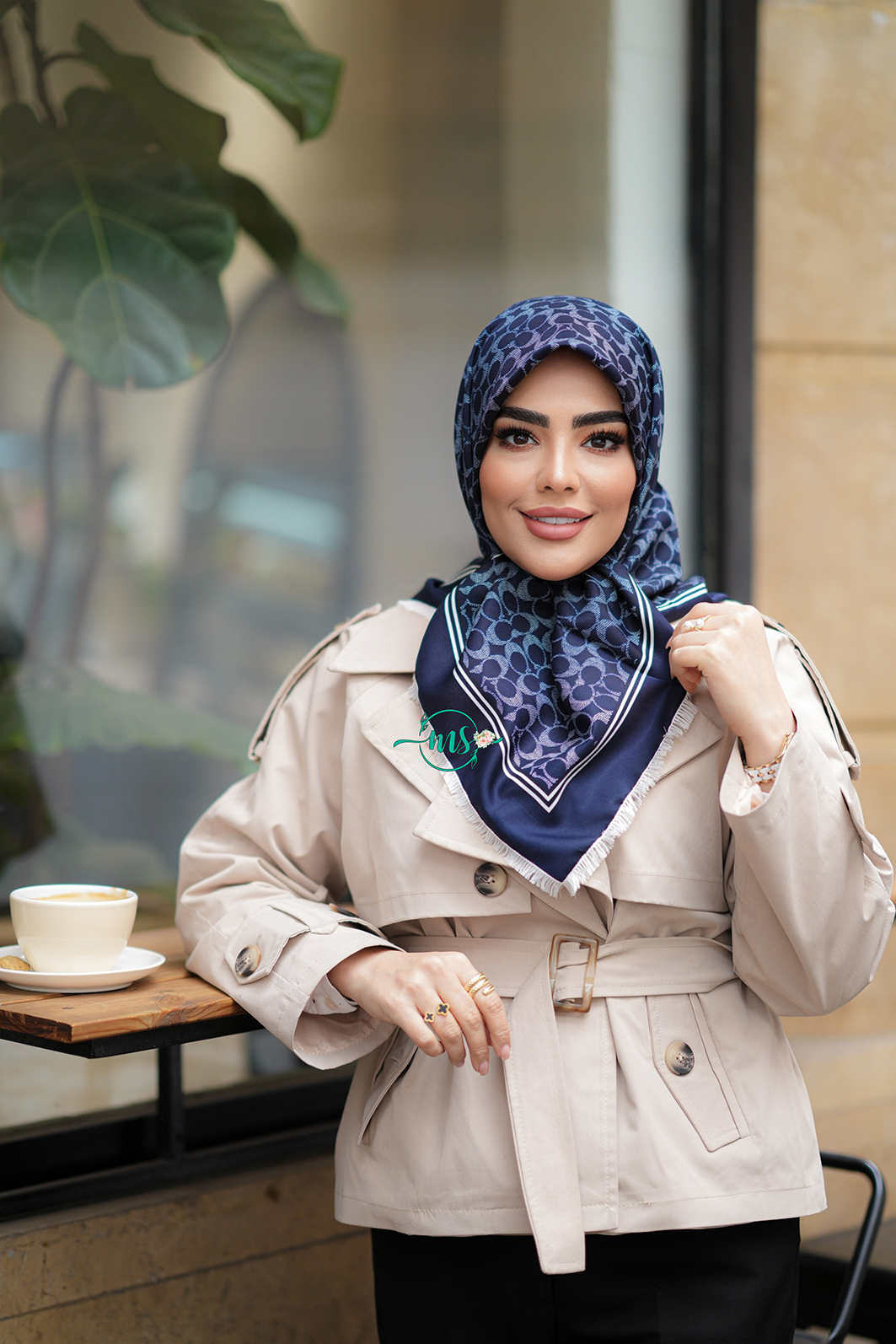 روسری ابریشم طرح شنل رنگ سرمه ای