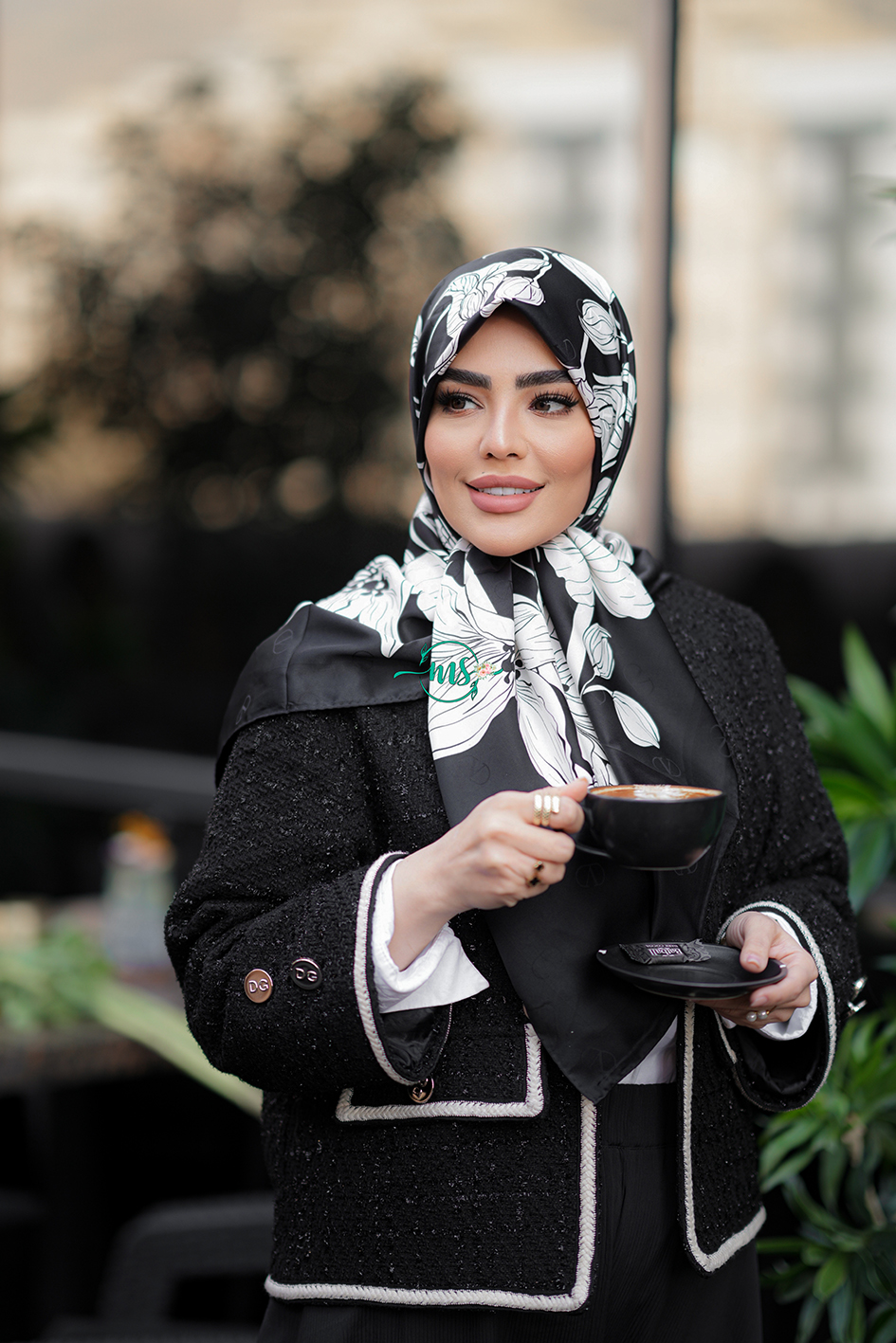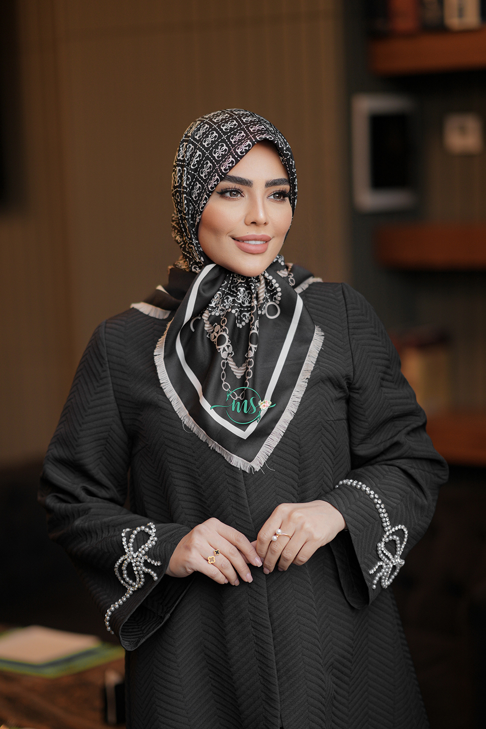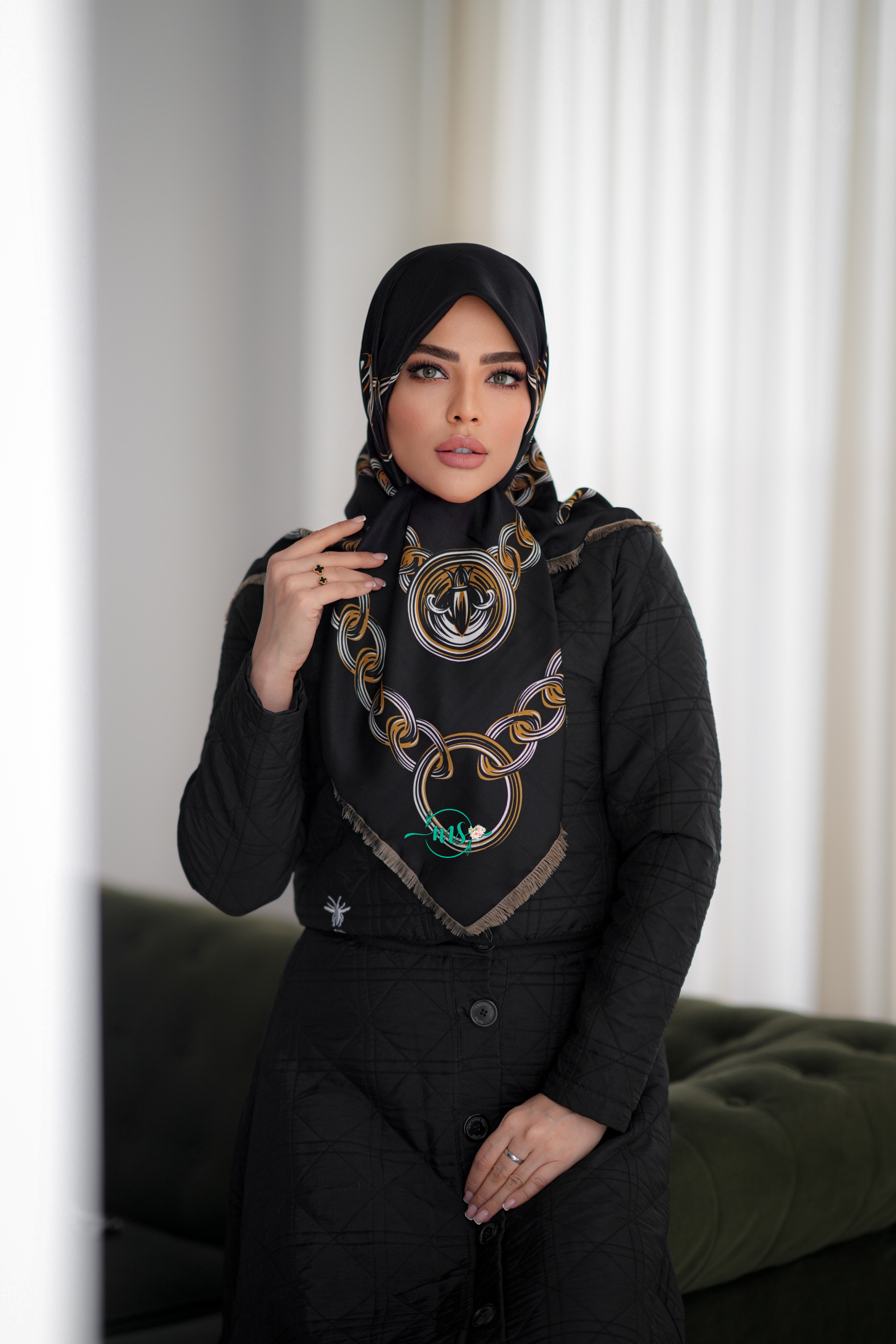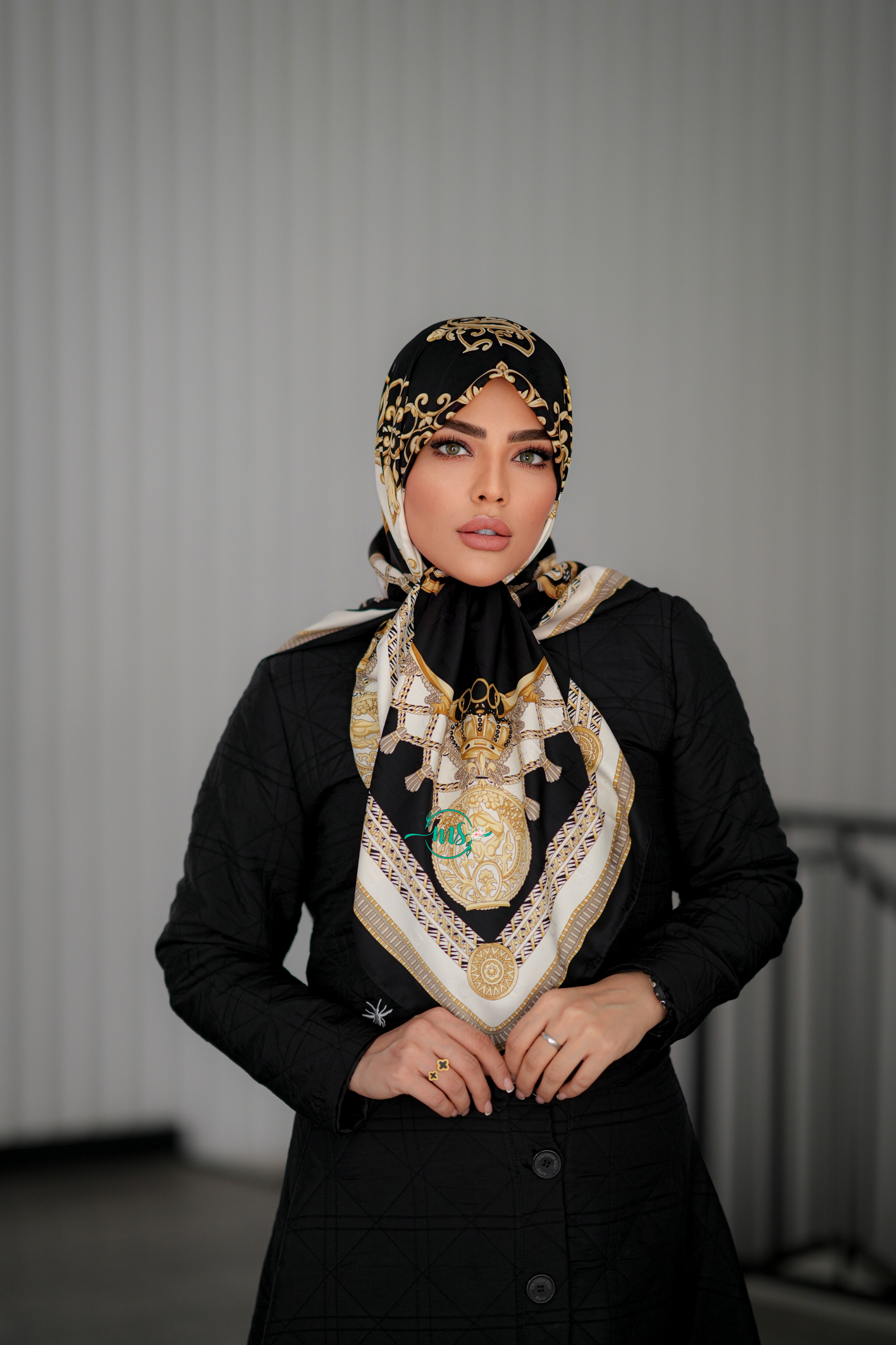 روسری طرح سلین مشکی سفید