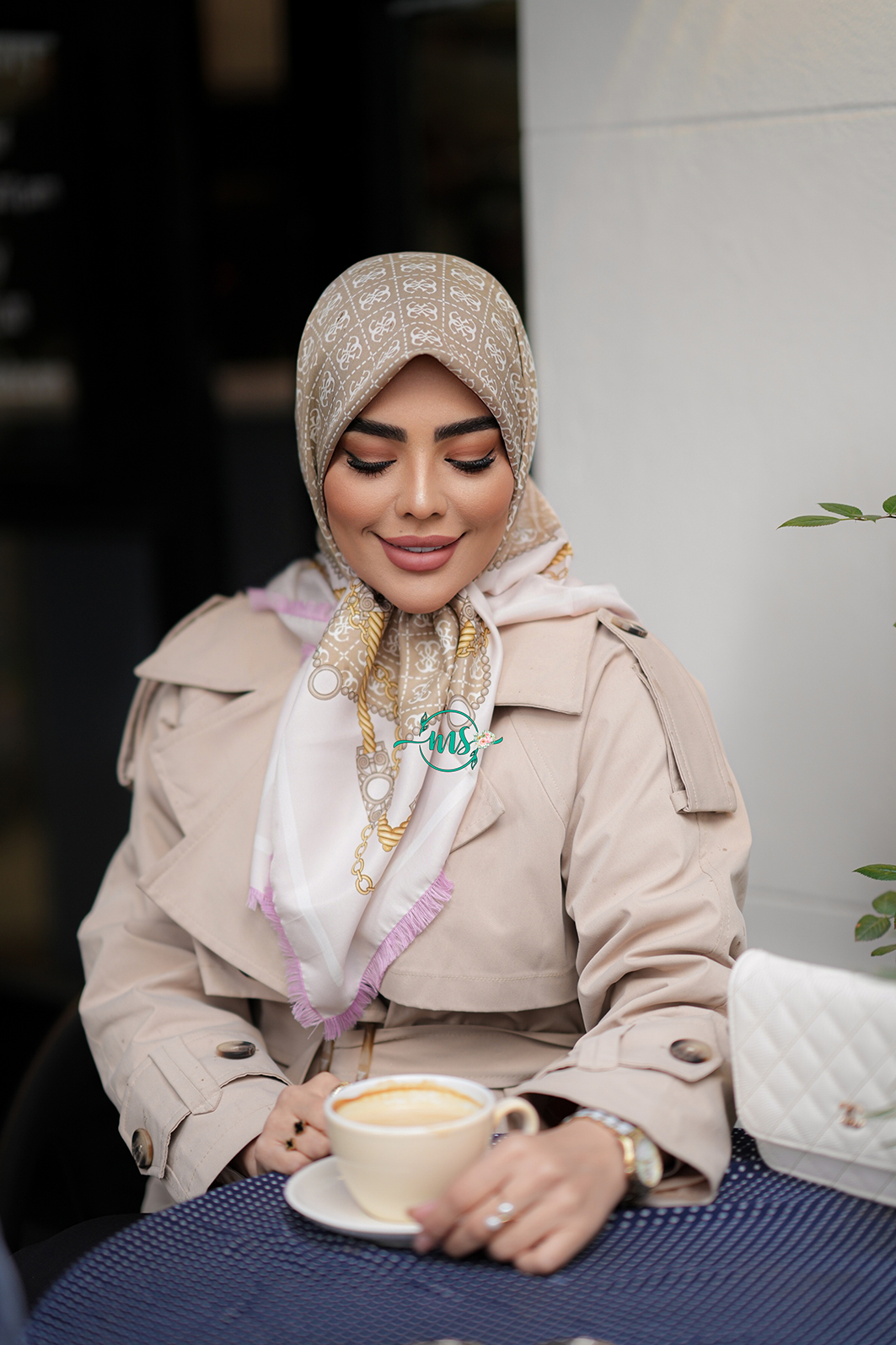 روسری کشمیر طرح گوچی رنگ کرم صورتی