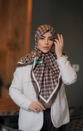 روسری ابریشم ژاکارد طرح سلین رنگ قهوه ای