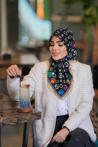 ناموجودروسری ابریشم ژاکارد طرح سینیوریتا مشکی قرمز