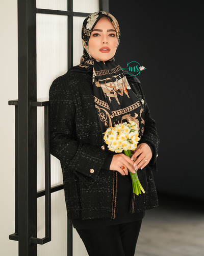 روسری نخ یونیک طرح گل رنگ مشکی قهوه ای