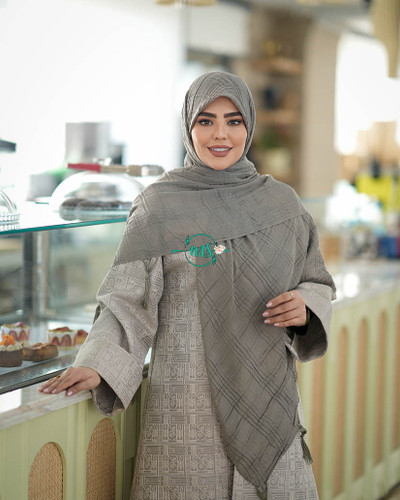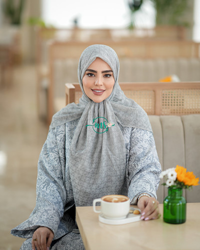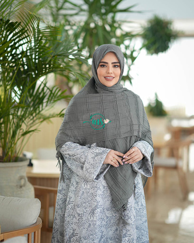 روسری پلیسه گل سنگشور طوسی روشن