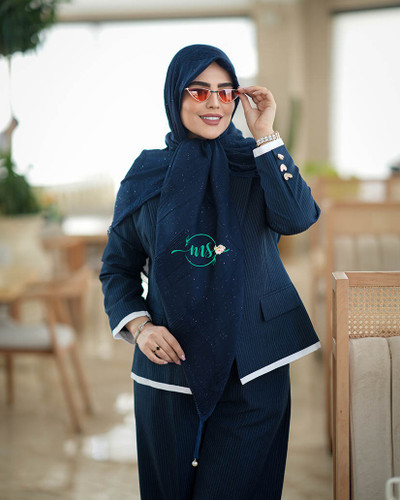 روسری پلیسه مرواریدی سرمه ای