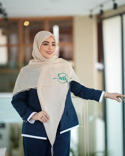 روسری پلیسه مرواریدی شیری