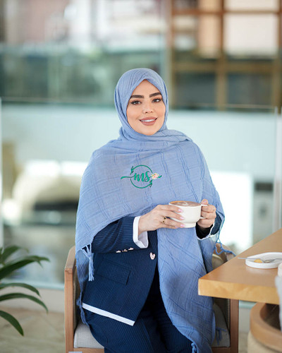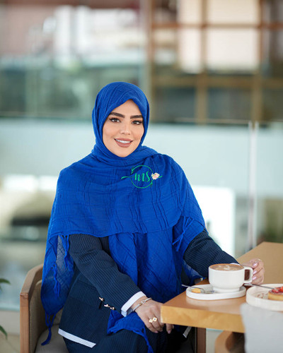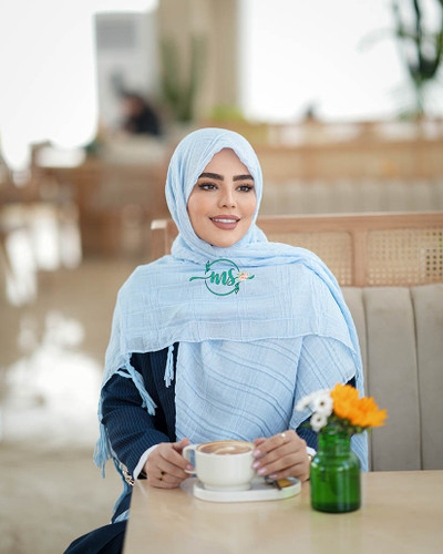 روسری پلیسه گل سنگشور آبی آسمانی